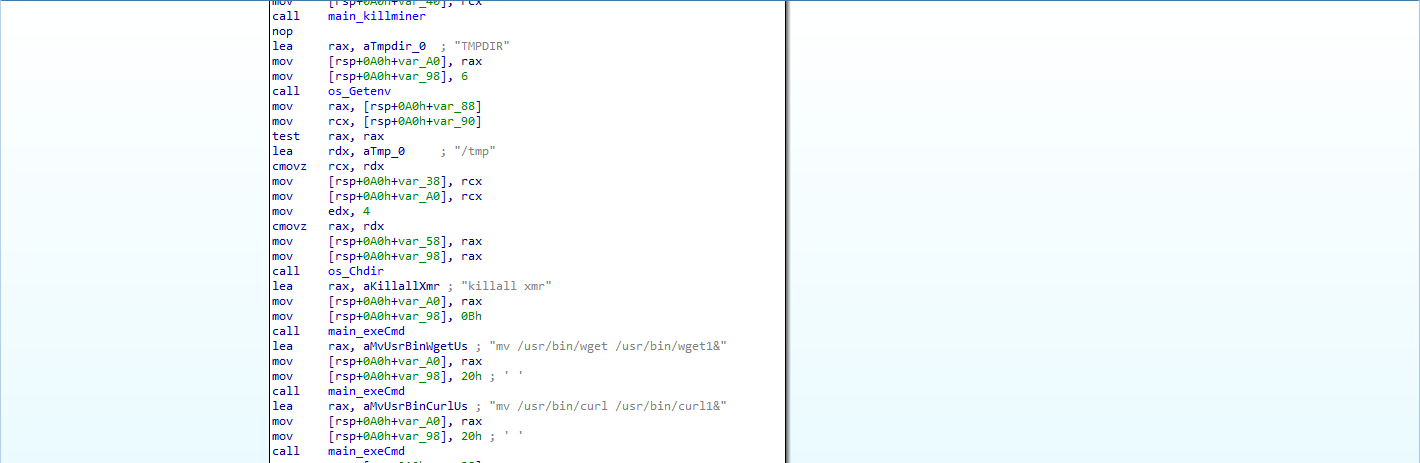 检查是否存在环境变量TMPDIR,切换到/tmp目录下执行killall xmr命令,将系统命令:wget改为wget1、curl改为curl1: